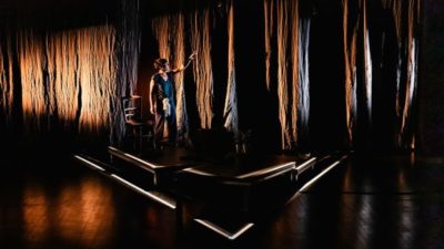 Spécialiste des populations arctiques, Nastassja Martin mène des recherches anthropologiques sur le peuple évène lorsqu’elle croise le chemin d’un ours sur le massif du Klioutchevskoï, aux confins de la Sibérie. L’affrontement est inégal, le baiser sanglant de l’ours arrache une partie du visage de la jeune femme, mais les deux ont la vie sauve. La frontière entre l’humain et l’animal implose à cet instant, créant un lien mystique. Le récit Croire aux fauves, paru en 2019, est autant celui d’une renaissance qu’une réflexion sur la rencontre avec l’altérité, où la construction de soi est faite aussi de ce qui est étranger. Dans la culture animiste des Évènes, Nastassja Martin est devenue mi-femme mi-ours, celle qui se tient entre les mondes. Laure Werckmann a imaginé une mise en scène qui oscille entre ces dimensions, entre rêve et réalité, et matérialise les étapes à franchir jusqu’à la métamorphose. La comédienne, impressionnante, fait de ce spectacle une plongée immersive dans l’âme de l’anthropologue. Une expérience de théâtre vertigineuse.